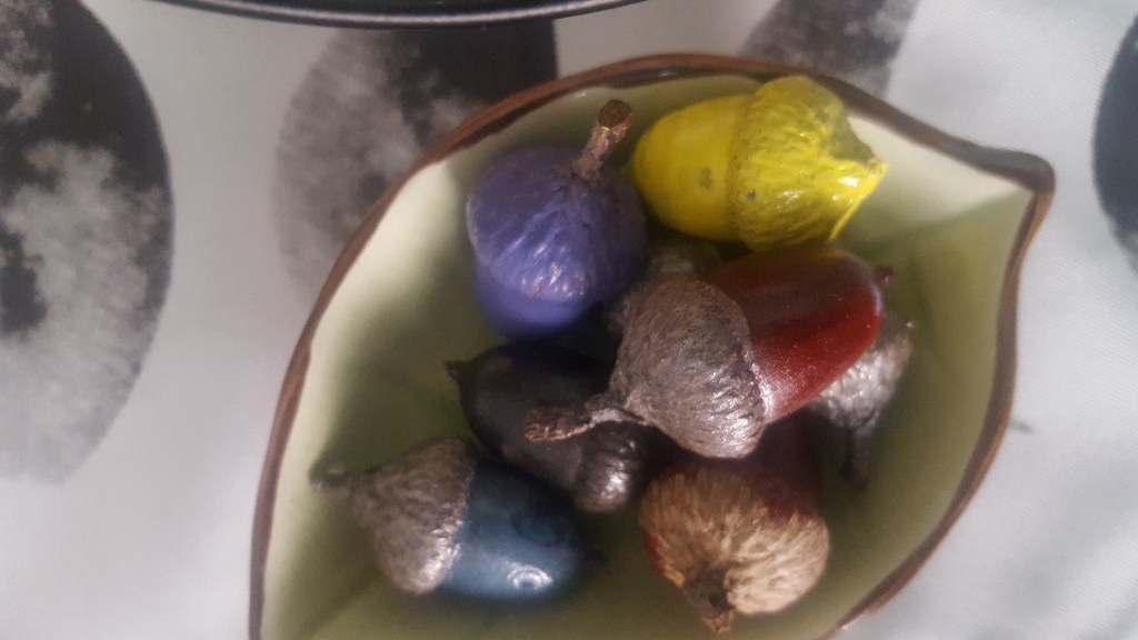 The rest of our acorns are resting in this adorable leaf bowl on our altar!