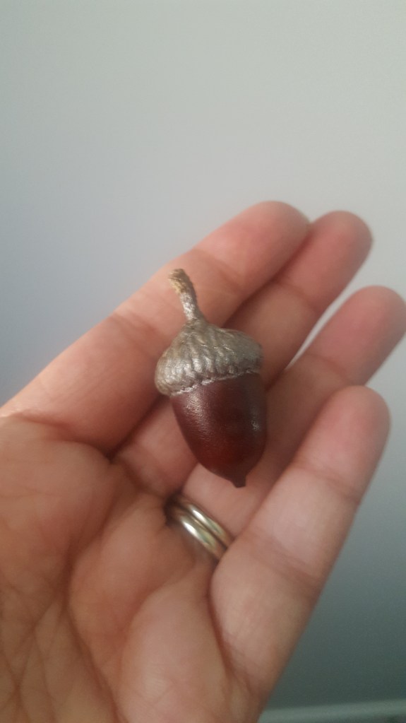 - an acorn, prepared as above. It’s actually easiest if you chose one that has been separated from it’s cap – though you’ll still need the cap!